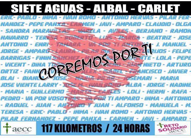 Trenta-dos atletes, 117 kilòmetres i un objectiu: fer públic el seu suport a les persones que pateixen càncer. De fet la condició per a participar en este "Reto Solidario" és que cadascún dels i de les atletes que participen han de fer-ho en nom d'una persona afectada per esta dura malaltia i els noms d'estes persones estan impresos als dorsals de la prova.