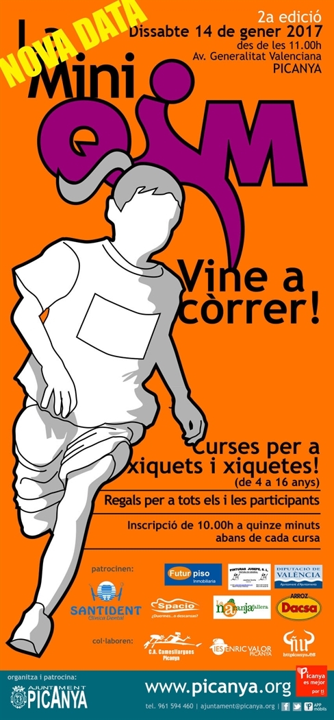 . En eixe sentit i amb la intenció de promoure l'activitat atlètica també entre menudes i menuts i joves, el club d'atletisme Camesllargues, amb la col·laboració de l'IES Enric Valor i l'Ajuntament de Picanya han organitzat la 2a Mini QiM, una matinal de curses per a xiquets i xiquetes entre 4 i 16 anys que tindrà lloc el dissabte 14 de gener des de les 11.00h a l'avinguda Generalitat Valenciana.