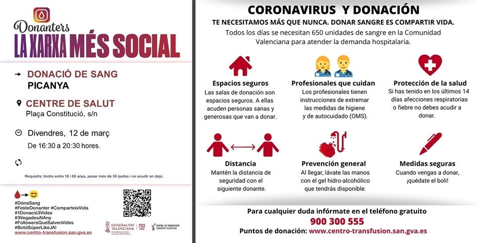 Les donacions es realitzaran tot i garantint les màximes mesures d'higiene i sanitàries.