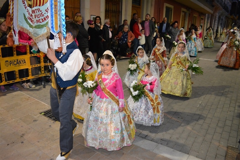 Imatges de l'ofrena de flors a la Mare de Déu de Montserrat de les Falles de Picanya 2017 Galeria 1 de 2