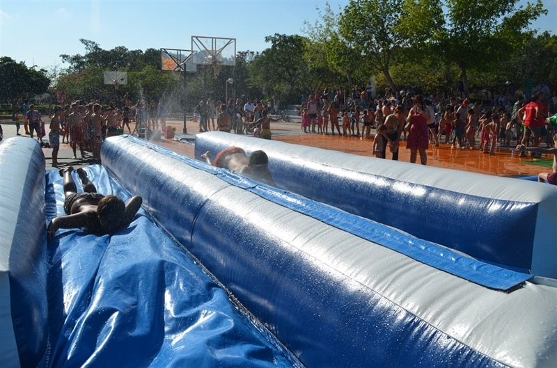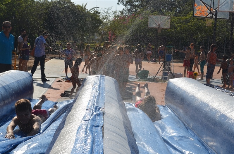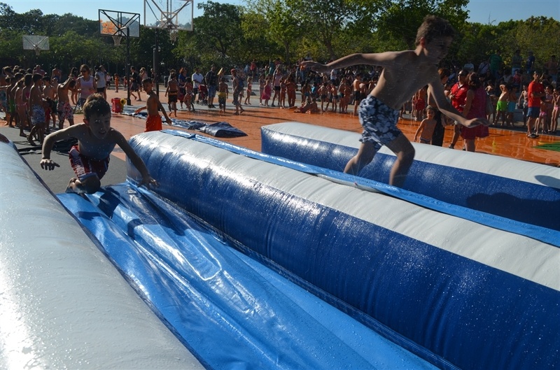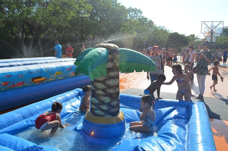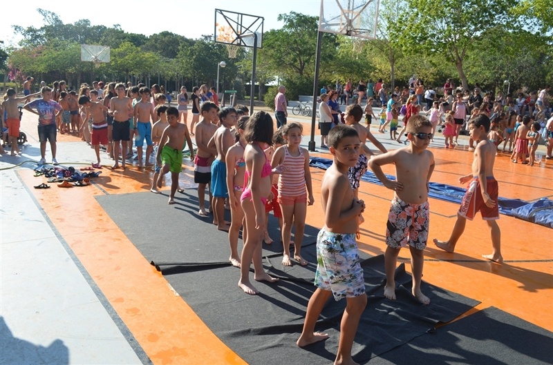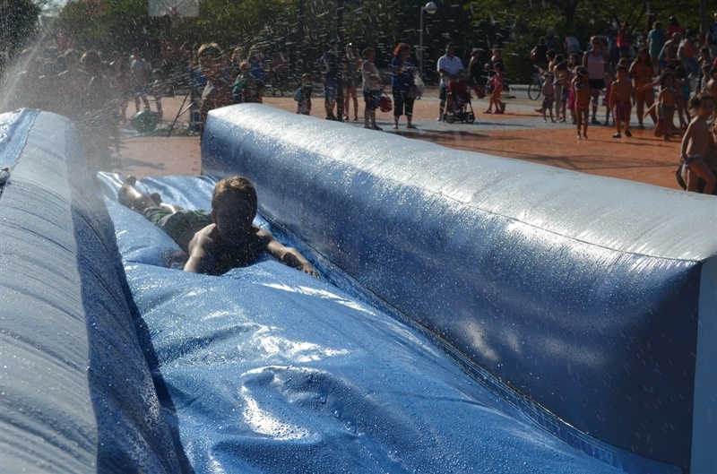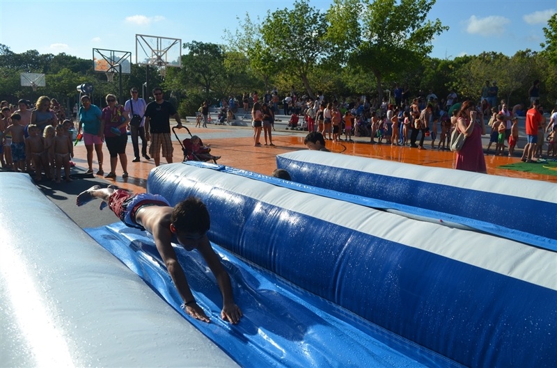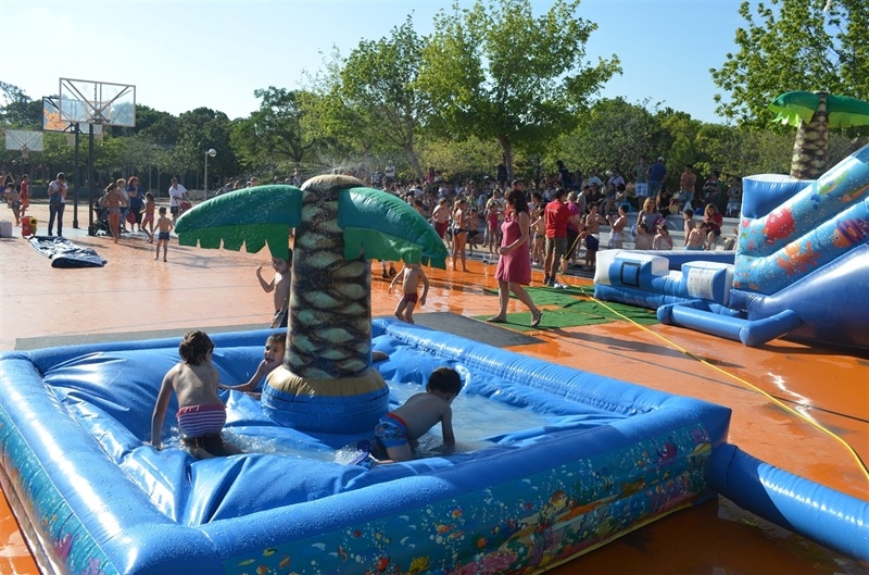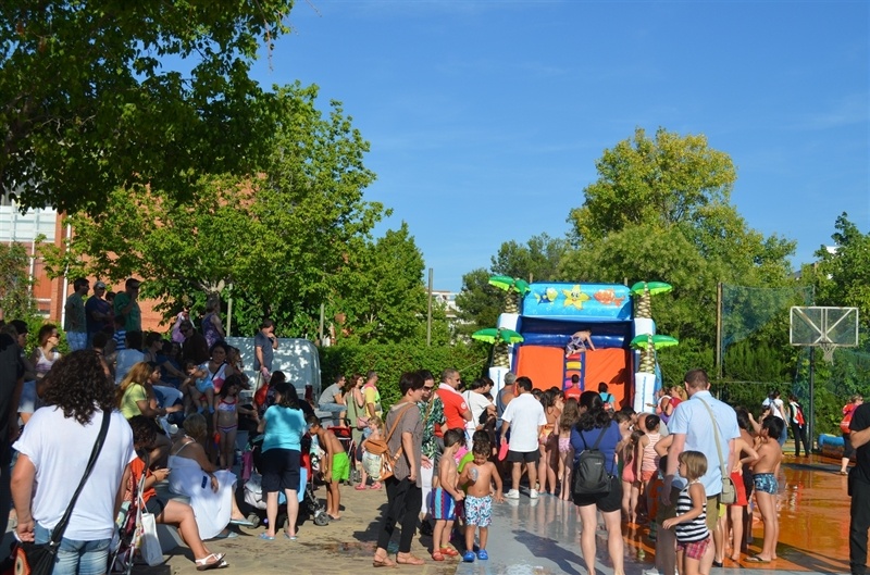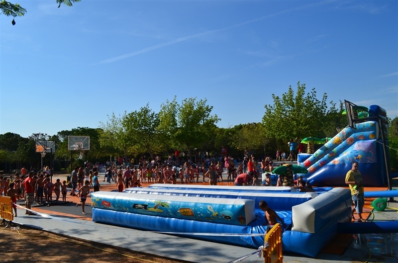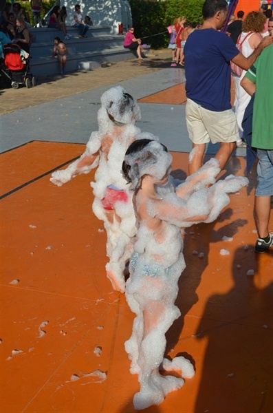 Imatges de la Festa d'unflables aquàtics i escuma celebrada al Parc Europa el divendres 11 amb motiu de les Festes Majors 2014